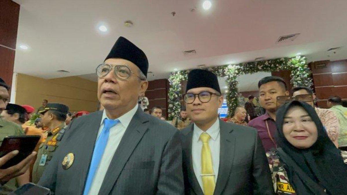 Gubernur Banten, Andra Soni mengirimkan pesannya kepada Benyamin Davnie dan Pilar Saga Ichsan saat berada di gedung DPRD Kota Tangerang Selatan.