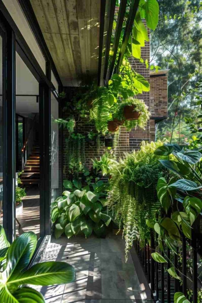 Apabila area balkon di apartemen Anda cukup sempit, pertimbangkanlah pembuatan taman vertikal. Menggunakan rak-rak tanaman atau papan dinding khusus bisa membantu merancang beragam jenis tanaman dengan cara yang tegak dan tidak menyita banyak lahan. Jenis-jenis tanaman seperti sirih gading, ferns, atau rempah-rempah sesuai untuk ide tersebut. Di samping itu, taman vertikal akan lebih efisien dalam penggunaan ruangan serta memberikan sentuhan dekoratif tambahan ke tembok balkon Anda. Terlihat cantik meski dibatasi oleh ukuran ruangan.
