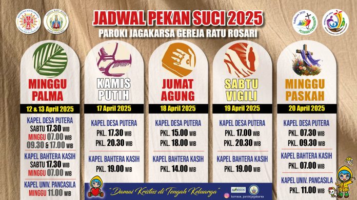 - 18 April 2025 pukul 19.00 WIB (misa Jumat Agung)
