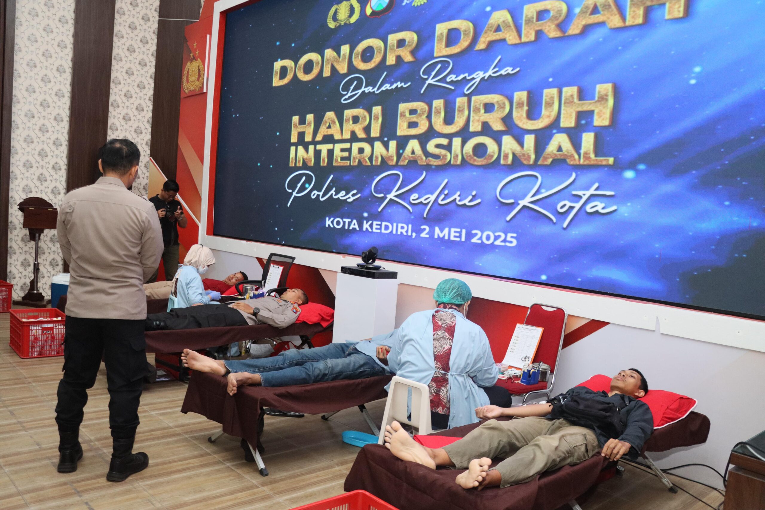 KOTA KEDIRI , bangjo.co.id– Polres Kediri Kota Polda Jatim bersama serikat pekerja yang bekerja sama dengan PMI (Palang Merah Indonesia) Kota Kediri menggelar donor darah dalam rangka memperingati hari buruh Internasional, Jum’at (2/5/2025)