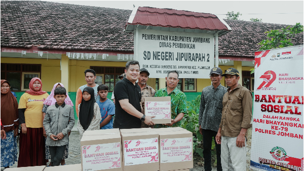 JOMBANG,bangjo.co.id Sebagai bentuk kepedulian terhadap masyarakat di wilayah terpencil, Kapolres Jombang AKBP Ardi Kurniawan, S.H., S.I.K., CPHR didampingi Pejabat Utama Polres Jombang menyalurkan bantuan sosial kepada warga Dusun Kedungdendeng, Desa Jipurapah, Kecamatan Plandaan, Kabupaten Jombang. (Minggu, 22/6/2025)