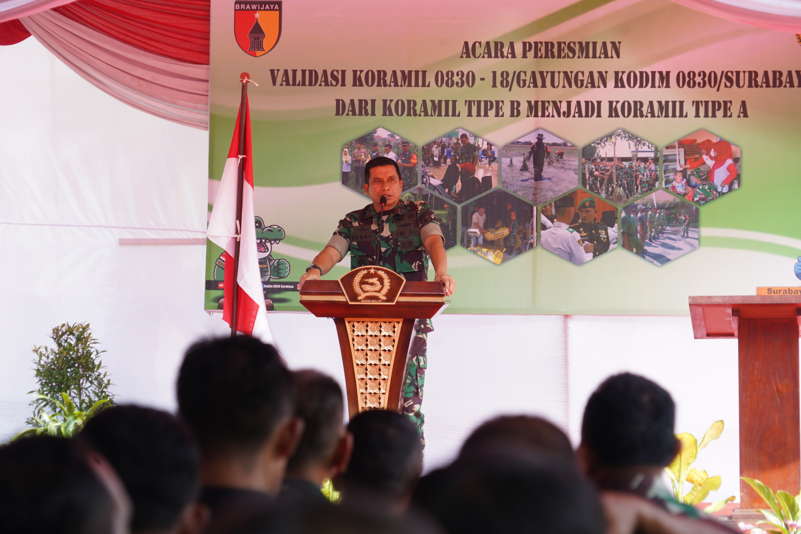 SURABAYA, bangjo.co.id– Komandan Korem (Danrem) 084/Bhaskara Jaya, Brigjen TNI Danny Alkadrie, secara resmi meresmikan Koramil 0830-18 Gayungan dari Tipe B menjadi Tipe A. Peresmian tersebut berlangsung di Makoramil 0830-18 Gayungan, Jalan Kertomenanggal Timur No. 1, Kamis (26/6/2025).