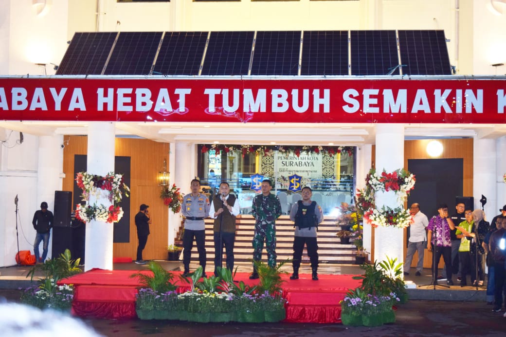 Kegiatan tersebut diawali dengan apel bersama yang diikuti oleh unsur TNI, Polri, Satpol PP, dan perwakilan dari kecamatan serta kelurahan se-Kota Surabaya bertempat di Taman Surya Balai kota Surabaya.