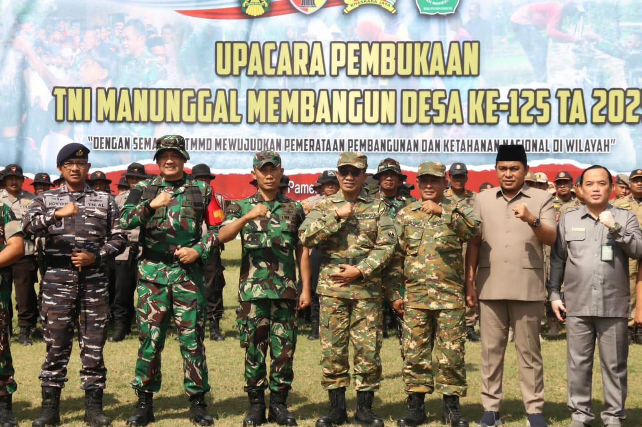 Pamekasan,Bangjo.co.id Kegiatan TNI Manunggal Membangun Desa (TMMD) ke-125 Tahun 2025 resmi dibuka oleh Dr.KH.Kholilurrahman,SH.,M.Si.,dalam sebuah upacara yang di gelar di Lapangan Nagara Bhakti,Pendopo Ronggosukiwati,Jl.Pamung Praja No.1,Rabu (23/7/2025).