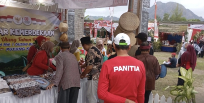 Stand bazar UMKM yang dilaksanakan selama tiga hari, mulai tanggal 13 – 15 Agustus 2025, menampilkan berbagai produk lokal, seperti makanan, minuman, kerajinan tangan, dan produk unggulan lainnya, yang sekaligus di hibur panggung hiburan dengan berbagai pertunjukan seperti tari tarian, lomba Karoke serta seni budaya tradisional jaranan.
