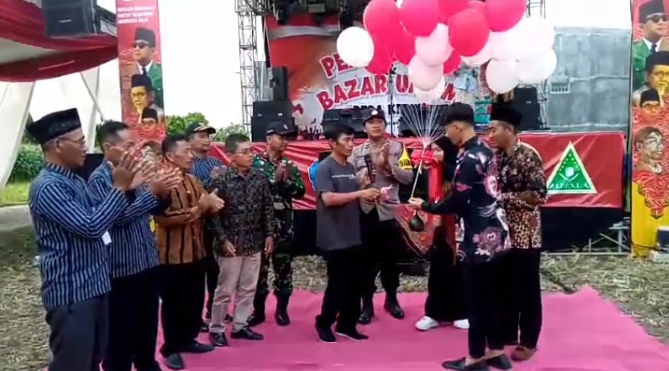 Dengan mengucapkan, “Bismillahirohmanirohim” Kasi Pelayanan Masyarakat Kecamatan Boyolangu Mujito membuka stand bazar UMKM dan pentas seni ditandai dengan pemotongan pita balon didampingi Muspika Kecamatan Boyolangu, yang disaksikan Kepala Desa Kepuh Winarko beserta perangkat, BPD, LPM, Rt, Rw, Tokoh Masyarakat, Tokoh Agama, Ibu PKK, Panitia PHBN serta tamu undangan yang hadir.(Shr).