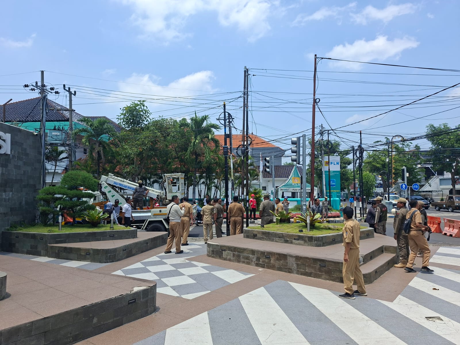 Selanjutnya, penertiban dilanjutkan di perempatan Jalan Mayjen Sungkono. Beberapa tiang dan kabel jaringan diketahui menutupi pandangan terhadap lampu lalu lintas (traffic light), sehingga berpotensi mengganggu keselamatan pengguna jalan. Petugas gabungan pun melakukan pencabutan dan penataan ulang agar lalu lintas kembali aman dan lancar.