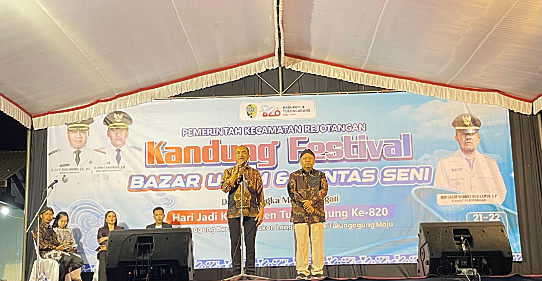 TULUNGAGUNG, Bangjo.co.id – Peringatan Hari Jadi Tulungagung ke – 820, Camat Rejotangan Didi Jarot Widodo Nursamsu menggelar Kandung Festifal ( Pameran UMKM ) produk unggulan berkolaborasi pengangkatan potensi tradisi budaya. Sehingga dengan kedekatan kebudayaan nguripi uripe temen yang bergerak di sektor UMKM dan pedagang kaki lima.