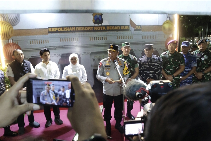 SURABAYA, Bangjo.co.id– Menjelang pergantian Tahun Baru 2026, Kapolda Jawa Timur Irjen Pol Nanang Avianto bersama jajaran Forum Koordinasi Pimpinan Daerah (Forkopimda) Provinsi Jawa Timur melakukan pemantauan langsung di sejumlah titik pengamanan di Kota Surabaya, Rabu (31/12/2025) malam.