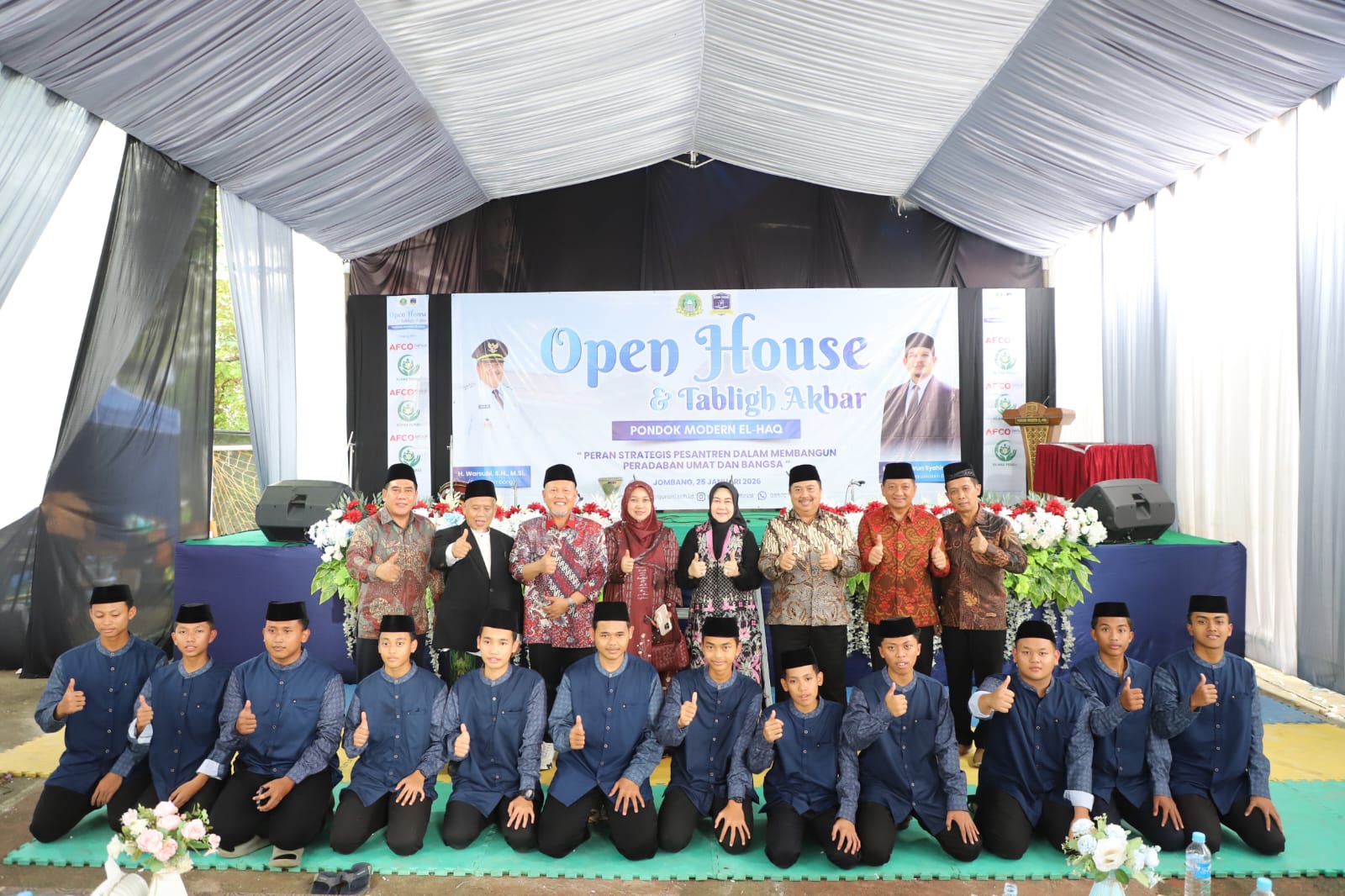 JOMBANG,Bangjo.co.id – Bupati Jombang, Warsubi, S.H., M.Si., telah meresmikan Gedung Aimmah di Pondok Modern El-Haq Putra, yang ada di Kecamatan Bareng, pada Minggu (25/1/2026) pagi. Peresmian ini dirangkaikan dengan acara Open House dan Tabligh Akbar yang mengusung tema “Peran Strategis Pesantren dalam Membangun Peradaban Umat dan Bangsa”.