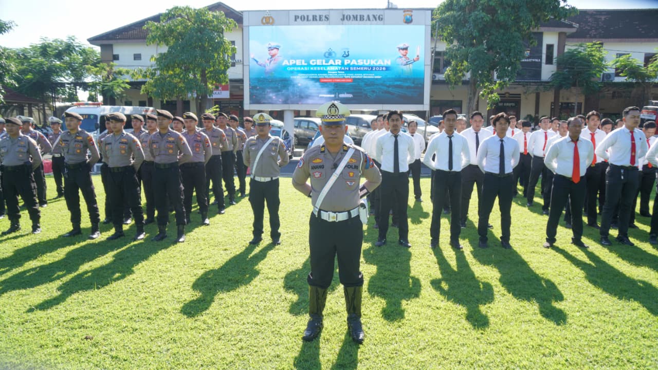 JOMBANG,Bangjo.co.id – Polres Jombang melaksanakan Apel Gelar Pasukan Operasi Kepolisian Keselamatan Semeru 2026 di Lapangan Mapolres Jombang pada Senin pagi (02/02/2026). Kegiatan tersebut dipimpin oleh Kapolres Jombang AKBP Ardi Kurniawan, S.H., S.I.K., CPHR yang diwakili Wakapolres Kompol Syarlis, S.I.K., M.I.K.