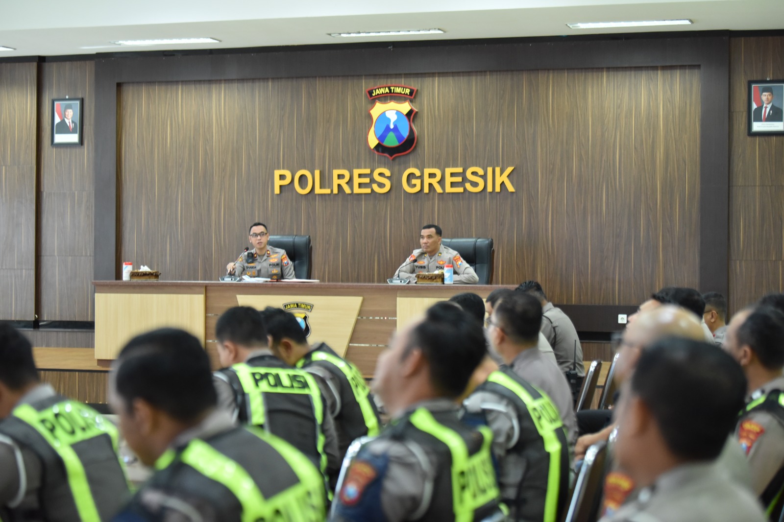 Kegiatan ini dipimpin langsung oleh Wakapolres Gresik Kompol Shabda Purusha Putra, didampingi Kabag Ops Kompol Yusis Budi Krismanto, serta diikuti para pejabat utama, kasatgas, dan perwira yang terlibat dalam struktur Operasi Ketupat Semeru 2026.