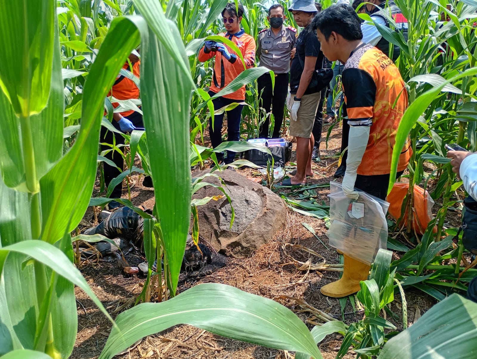 Penemuan ini bermula saat seorang warga bernama Marjuli hendak mencari rumput untuk pakan ternak di area tersebut. Namun, langkahnya terhenti saat mencium bau menyengat yang menuntunnya ke tengah tanaman jagung.
