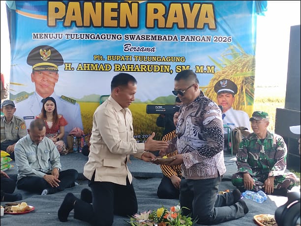 Panen raya padi dengan tema ” Menuju Tulungagung Swasembada Pangan 2026 ” sebagai wujud apresiasi atas melimpahnya hasil bumi tahun ini.