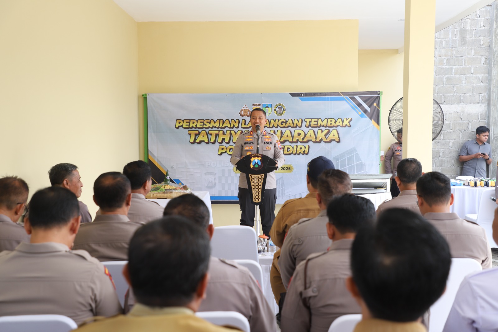 Peresmian lapangan tembak yang berada di kawasan Polsek Plosoklaten, Desa Plosolor, Kecamatan Plosoklaten, Kabupaten Kediri ini ditandai dengan pemotongan tumpeng oleh Kapolres Kediri AKBP Bramastyo Priaji, S.H., S.I.K., M.Si., Senin (27/4/2026).