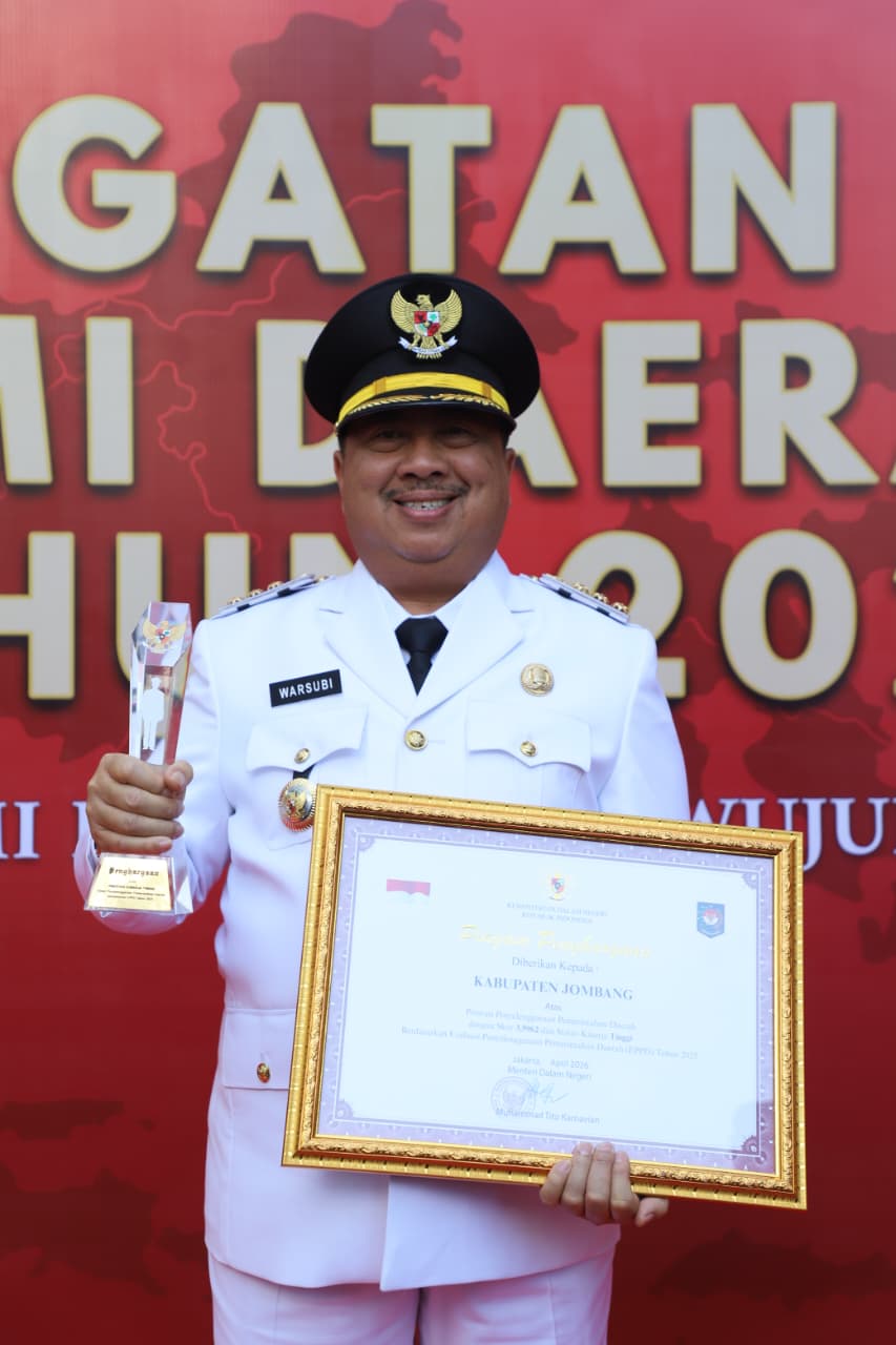 Penghargaan yang diterima oleh Bupati Warsubi merupakan bentuk pengakuan resmi dari Pemerintah Pusat melalui Kementerian Dalam Negeri RI atas keberhasilan Kabupaten Jombang dalam menyelenggarakan pemerintahan daerah yang efektif, transparan, dan akuntabel sepanjang tahun 2025.