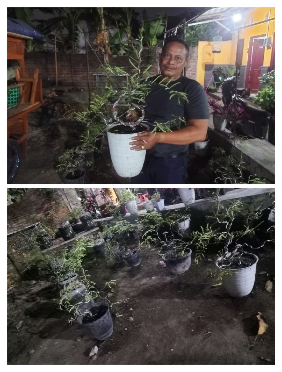 Dengan memanfaatkan lahan sekitar 300-+meter di rumahnya, ditemui dirumahnya hari Jumat(29/09/23)Muhamad Abdul Malik mulai membuat bahan bonsai, dari bonsai setengah jadi hingga pohon sudah menjadi bonsai.