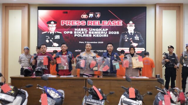 KEDIRI, Bangjo.co.id – Jajaran Polres Kediri Polda Jawa Timur kembali menorehkan hasil positif dalam pelaksanaan Operasi Sikat Semeru 2025. Selama dua pekan pelaksanaan operasi, petugas berhasil mengungkap 15 kasus kejahatan dengan 14 tersangka diamankan, terdiri dari 12 orang dewasa dan 2 orang masih di bawah umur. Kasus yang berhasil diungkap bervariasi, meliputi 5 kasus […]