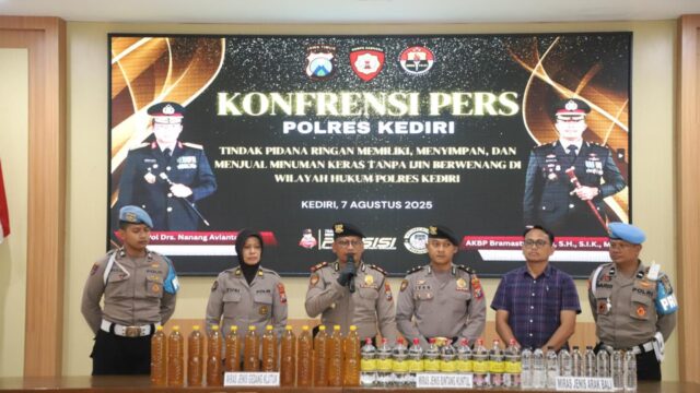 KEDIRI, bangjo.co.id – Sat Samapta Polres Kediri dalam Operasi Cipta Kondisi yang digelar pada Rabu (6/8/2025) malam melakukan penggerebekan dilakukan di sebuah gudang di wilayah Kecamatan Wates Kabupaten Kediri yang disinyalir menjadi tempat penyimpanan miras tanpa izin edar. Diketahui pemilik berinisial RS (41) warga Desa Wonorejo Kecamatan Wates. Kapolres Kediri AKBP Bramastyo Priaji melalui […]