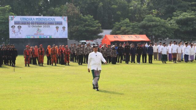 JOMBANG, Bangjo.co.id – Pemerintah Kabupaten Jombang menggelar upacara peringatan Hari Jadi ke-115 Pemerintah Kabupaten Jombang, Hari Jadi ke-80 Provinsi Jawa Timur, dan Hari Santri Nasional Tahun 2025. Upacara yang berlangsung khidmat di Lapangan Pemerintah Kabupaten Jombang pada Senin, (21 Oktober 2025) pagi ini dipimpin langsung oleh Bupati Jombang Warsubi yang mengenakan baju Jombang Deles, […]