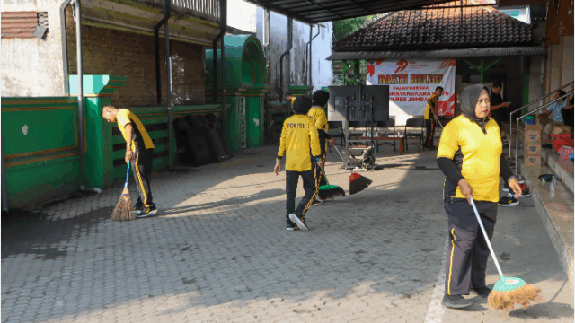 Jombang, bangjo.co.id – Menjelang Hari Bhayangkara ke-79, Polres Jombang melaksanakan kegiatan bakti religi dengan membersihkan Masjid Al-Ikhlas yang terletak di Kelurahan Jelakombo, Jombang, pada Selasa (17/6/2025). Kegiatan ini melibatkan sejumlah personel Polres Jombang bersama warga setempat yang bergotong royong membersihkan area masjid mulai dari ruang salat, tempat wudu, hingga halaman dan lingkungan sekitarnya. Selain […]