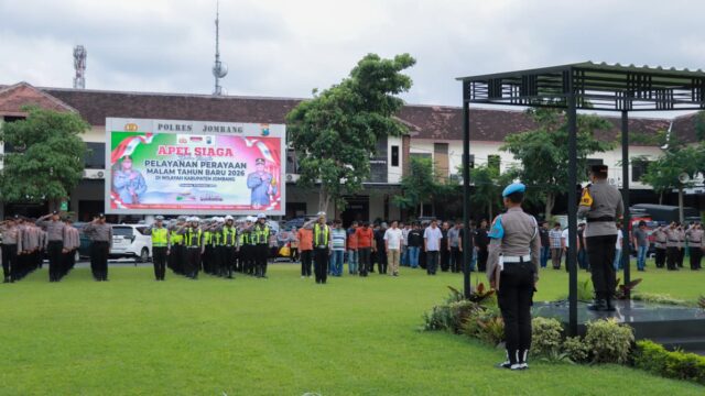 JOMBANG,Bangjo.co.id– Ratusan personel Polres Jombang disiagakan dalam rangka Pelayanan Pengamanan Malam Tahun Baru 2026, guna memastikan situasi keamanan dan ketertiban masyarakat tetap aman dan kondusif. Kesiapan tersebut ditandai dengan pelaksanaan Apel Pelayanan Pengamanan yang dipimpin langsung oleh Kapolres Jombang, AKBP Ardi Kurniawan, S.H., S.I.K., CPHR, dan diikuti oleh personel Polres Jombang serta Polsek jajaran […]